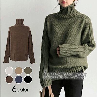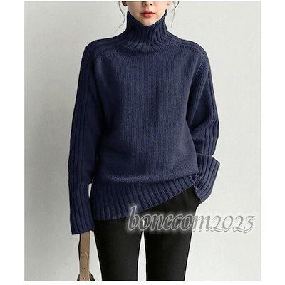 ハイネック 長袖 ニット レディース宅配便 リブ切替 セーター トップス 秋冬