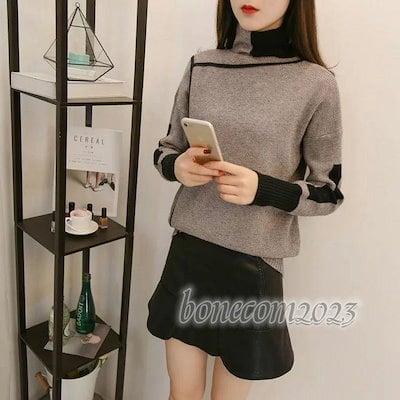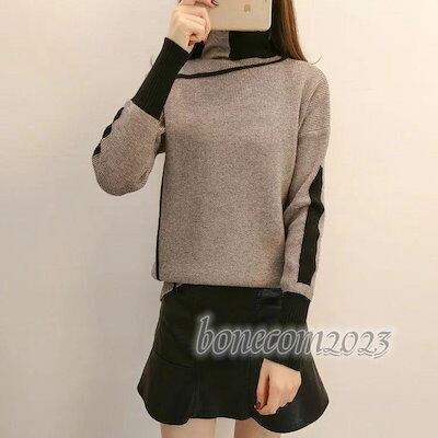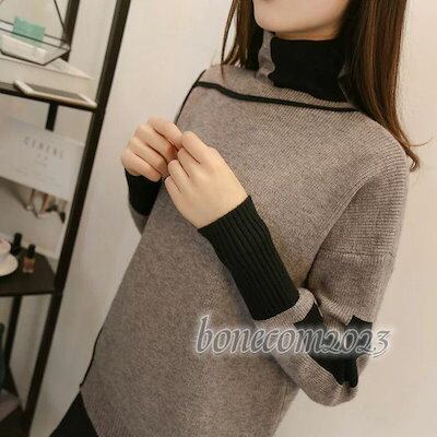 レディース秋冬 韓国風 長袖 色 ニットセーター トップス タートルネック ニットソー ハイネック 配色 通勤 ニットセーター ニットソー 上品
