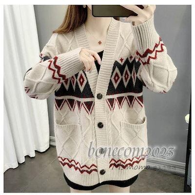 ネックカーディガン ニットカーディガン ショット丈セーターアウター ニットコーディガン 民族風 秋服 レディース 秋冬代長袖 韓国風 ゆったり オシャレ