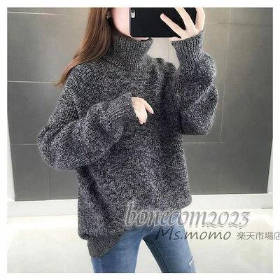 ハイネックショット丈プルオーバー 代 レディース ニットトップス 大人韓国風 無地セーター ニットトップス ゆったりにトソー 秋冬代長袖 オシャレ