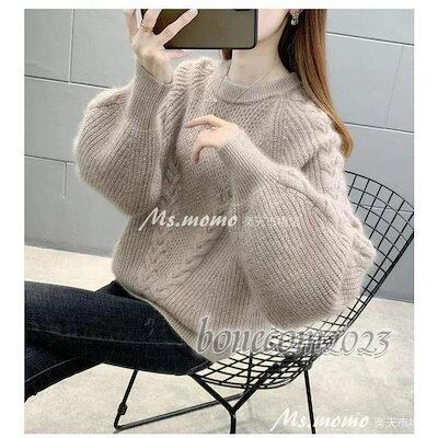 オシャレ大人 クルーネック 無地セーター ゆったりニットインナー 韓国風 秋冬代長袖ニットトップス レディース ニットソー ニットセーター