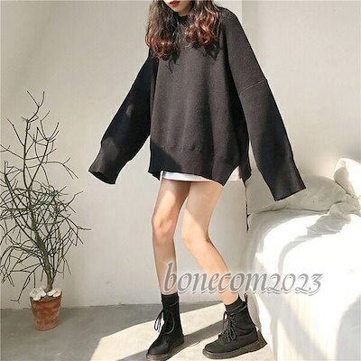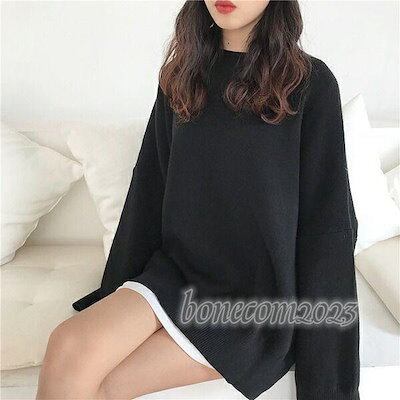 冬 レディース セーター 大人 秋 春 ブラック きれいめ 長袖 グリーン グレー シンプル オーバーサイズ ニット ラウンドネックトップス 秋冬 ゆるニット