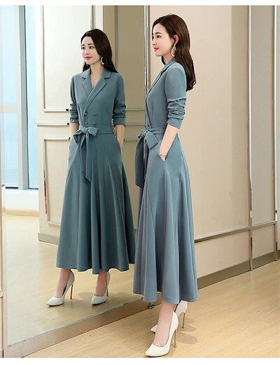 ワンピース ワンピースドレス ロングワンピース 秋冬ワンピース ドレス フレアワンピース レディース 可愛い フォーマル 秋冬 長袖ワンピース フレア 長袖 無地 Aライン OL 体型カバー 着痩せ