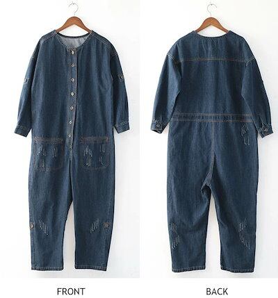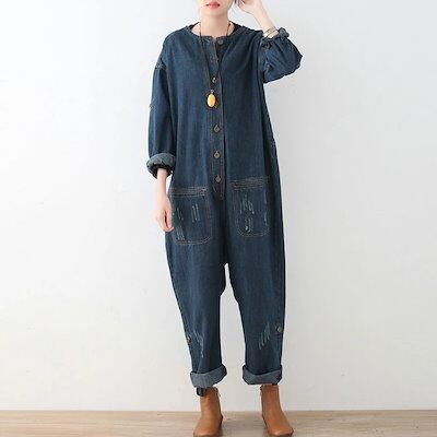 デニム つなぎ レディース デニム オールインワン デニムパンツドレス 連体服 パンツドレス オーバーオール デニムオールインワン 長袖 ロングパンツ マキシ丈 ツナギ サルエル 古着風 マタニティ