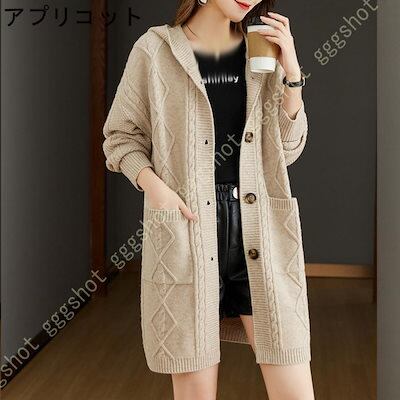 ニットカーディガン 秋物 レディース 長袖 ニット 羽織 ロングニット ロングカーディガン ポケット付き トップス ノーカラー セーター 前開き ロングアウター