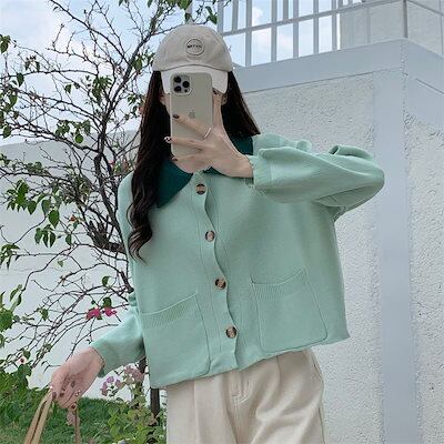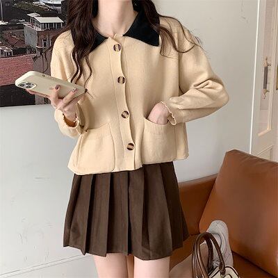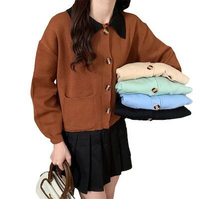 人気なリブニット 韓国ファッションレディース カーディガン ニット 秋コーデ 長袖 オフィスカジュアル 通勤 女性 服 春秋冬 無地 前開き おしゃれ かわいい ポケット襟 洗える