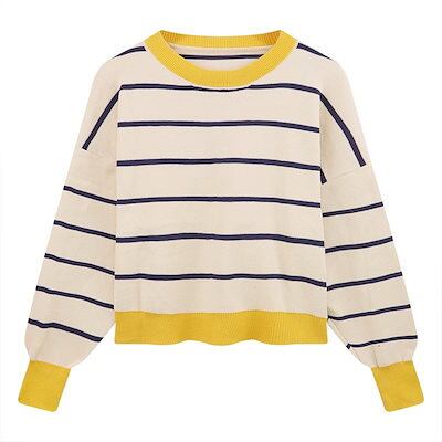 人気なリブニット ベーシックニット カシミヤタッチ 日韓ファッション 秋冬冬ニットトップス シンプルストライプ セーター レディース 怠惰な風百掛け ニットセーター