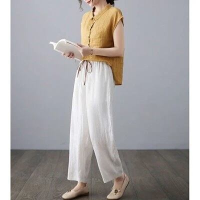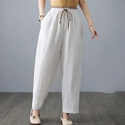 作トレンドボトムステーパードパンツストレートサルエルパンツウエストゴムレディースカジュアルポケット付きゆったりリネン綿九分丈薄カジュアル