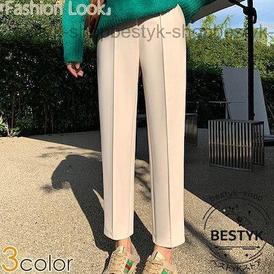 パンツ テーパードパンツ きれいめ 美脚 フォーマル オフィス 九分丈 クロップドパンツ センタープレス ブラック アイボリー ベージュ レディース ボ