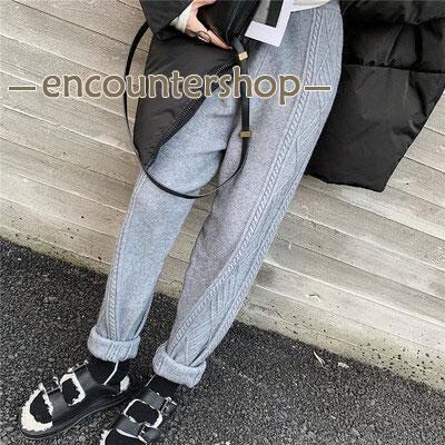 ニットパンツ レディース テーパードパンツ 厚手ニット 9分丈 レトロ ケーブル編み サルエルパンツ ニット ボトムス ウエストゴム 秋冬 ズボン