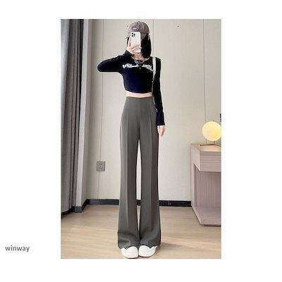スラックス レディース フレアパンツ 美脚 レトロ ロングパンツ ハイウエスト スーツパンツ 高級感 春秋 お洒落 長ズボン 体型カバー