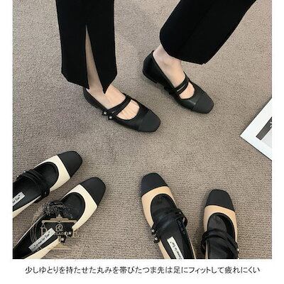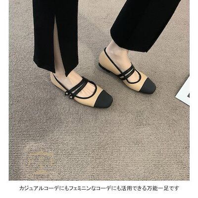 パンプス レディース フラットシューズ ラウンドトゥ ダブルベルト ぺたんこ 滑りにくい 脱げない 走れる シンプル 美脚 通勤 春夏秋