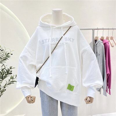 パ一力一トレンドはビッグロゴ 秋秋百掛け長袖パーカー/薄い ウェット 韓国ファッション カジュアルト tシャツ レーナー