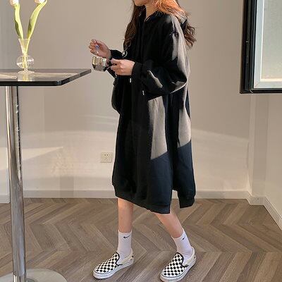 秋 パ一力一トレンドはビッグロゴ 秋ロングパーカー レディース スウェットワンピース 韓国ファッション着痩せ百掛け