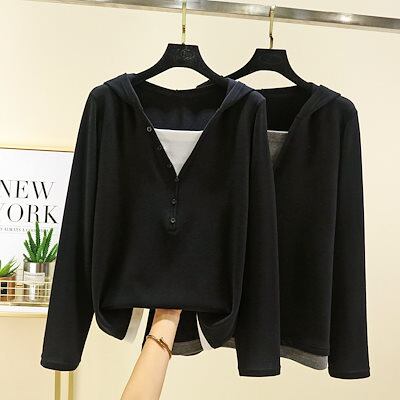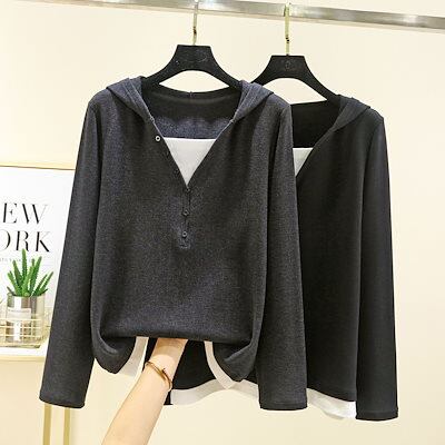 パーカー フード付き 長袖 tシャツ レディース 秋 コントラストカラー ゆったりレイヤード アンダーウェア トップス パーカー