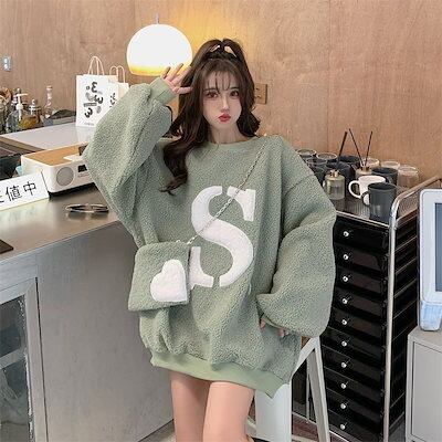 2024秋冬新作! 人気厚手 フェイクラムズフリース スウェット 韓国ファッション insゆったり パーカー レディース カジュアル 百掛け 裹起毛 スウェット 大きいサイズ トップス トレーナー