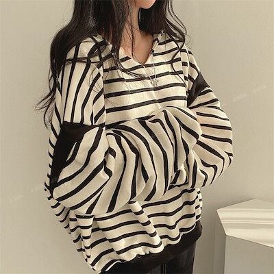 パーカー 流行り ストライプ 秋 パーカー レディース 日韓国ファッション ゆったり怠惰な風 フード付き パーカー カジュアル 百掛け 長袖スウェット 軽薄 トレーナー