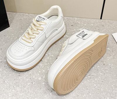 厚底スニーカー レースアップ レディース 5cmヒール ダッドスニーカー 白 ベージュ 可愛いアップシューズ22.5cm〜24.5cm スポーツ 春夏秋 ローカット 美脚 背が高くなる 身長アップ 学