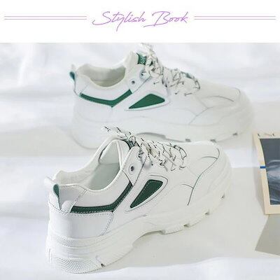 スニーカー レディース ランニングシューズ 厚底 フェイクレザーおしゃれ ローカット 編み上げ 防水 軽量 白 配色 レースアップシューズ 靴