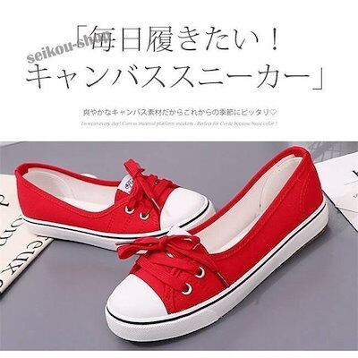スニーカー レディース シューズ キャンバススニーカー 美脚 歩きやすい 無地 ローカット 軽量 レースアプシューズ 編み上げ靴 スポーツ 全5色