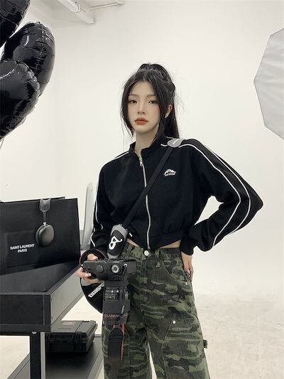 2024 秋 韓国 かわいい レディース アウター ブルゾン お出かけ ブラック ライトカーキ アウター長袖セクシートップスサイド冬カジュアルファッション系お出かけフル丈トラック