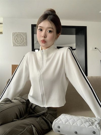 2024 秋 韓国 かわいい ニットネック レディース アウター ブルゾン お出かけ ブラック ライトカーキ アウター長袖セクシートップスサイド冬カジュアルファッション系お出かけフル丈トラック
