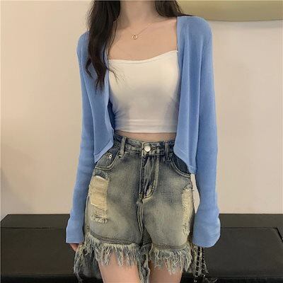 ライトニット カーディガン トップス 羽織り ショート 薄手 長袖 紫外線対策 UV対策 きれいめ オフィス OL カジュアル フレンチ
