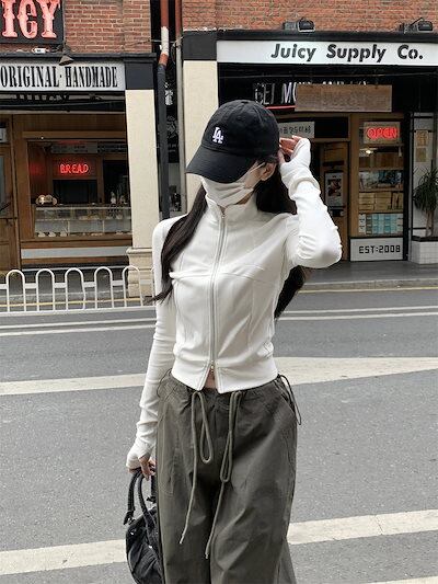 2024秋 アウター ショート ブルゾン かわいい フル ブルゾン トップス ハイ スタンド ショート ストリート レディース 長袖 カジュアル ファッションお出かけトラック