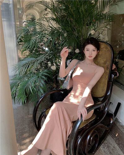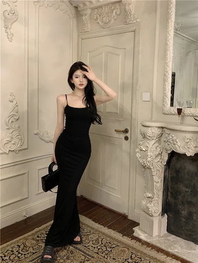 2024夏 韓国 ワンピース ロング丈 ゆったり Vネック キャミソール ハイウエスト フィッシュテールかわいい カジュアル おしゃれ 夏 ファッション フィッシュテールフレンチお出かけ