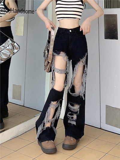 2024春秋デニムパンツ ボトムス ジーンズ ファッション系スタイル ゆるダボ ジーンズ シルエット加工 カジュアル 夏 メンズライク