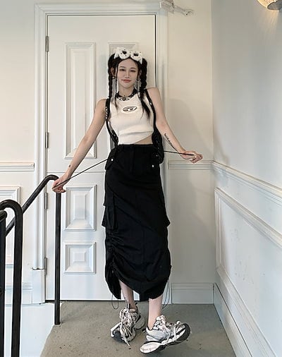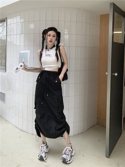 2024 春秋 スカート ロング丈 ポケット ハイウエスト マキシロング スカート ロング スカート 美脚効果 脚長効果 細見え 夏 おしゃれ かわいい サイド韓国系ファッション レディース お出かけ