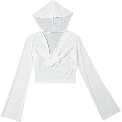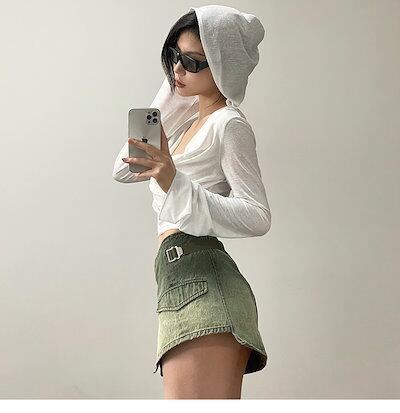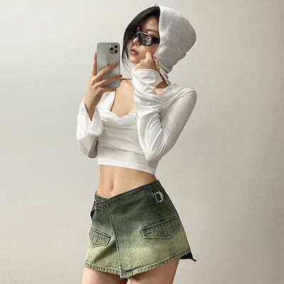 2024 春夏 フード付き tシャツ ファッション トップス 薄手 韓国系 長袖 秋 白 ソリッドカラー シャツスリムトップパイル襟日焼け止めシャツ肌見せ 女っぽ フレンチタイト丈 レディース T