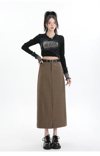 2024 春秋 スカート ロング丈 ポケット ハイウエスト 美脚効果 脚長効果 細見え 夏 おしゃれ ロング かわいい 韓国ファッション レディース お出かけ