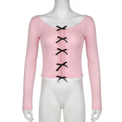 2024夏秋 tシャツ 長袖 トップス レイヤード風肌見せ重ね着風 韓国 ファッション系 カットソーインナーショート フィット T レディース カジュアル きれいめ フェミニンフレンチモックネック