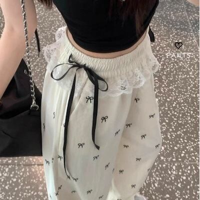 2024 夏 韓国パンツ ロング丈 ハイウエスト 美脚効果 脚長効果 細見え 夏 白 黒 おしゃれ かわいい キュート 甘め 韓国系ファッション レディース お出かけ
