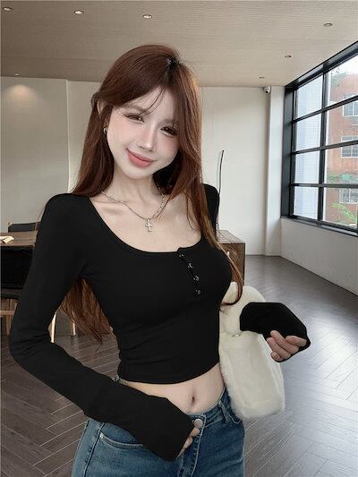 2024春夏 トップス 長袖 可愛い おしゃれ タイトフィット 韓国カットソー ラウンドカラー 重ね着丈 ネックスリーブ 女っぽ レディース Tファッション系 フェミニン きれいめ 色っぽ プリント