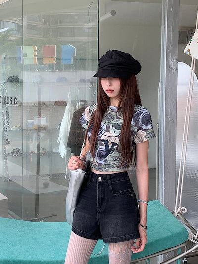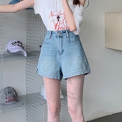 2024 春夏パンツ ショート丈 デニム ジーンズ ワイド ハイウエスト 美脚効果 脚長効果 細見え 夏 水色 黒 おしゃれ かわいい 韓国ファッション レディース お出かけ
