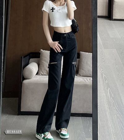 2024 春夏 ハイウエスト デニムパンツ 韓国 レディース ジーンズ 脚長 スタイルアップ カジュアル ファッション系きれいめ