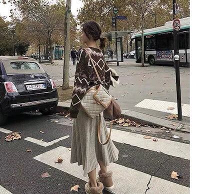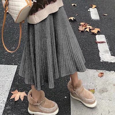 プリーツスカート 秋冬初秋 ニットスカート 着痩せプリーツスカート高質感ハイウエスト ロングスカート韓国ファッション 大人の気質 Aライン スカート