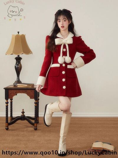 【 当日出荷 】脚魅せミニスカートサンタコスプレ 高級感があって素敵なコート女性冬の小さな香りの赤いクリスマススーツ