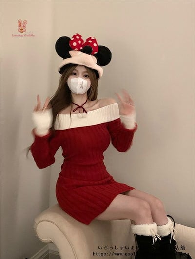 【 3天内迅速な出荷 】サンタ コスプレ秋冬の新作セクシーな胸ぬぐいニットワンピース秋冬は身を修めて痩せて見えるクリスマスレッドのヒップバッグスカート女