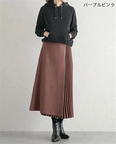 スカート プリーツスカート レディース アシンメトリー 無地 プリーツ ロングスカート ゆったり ロング ボトムス デザイン感 春 秋 冬 ドッキング 着痩せ お洒落 エレガント 知性 レトロ 体型カ