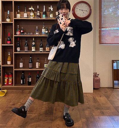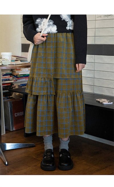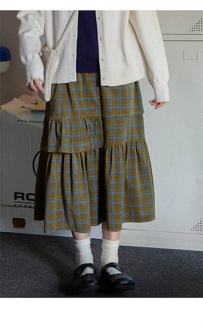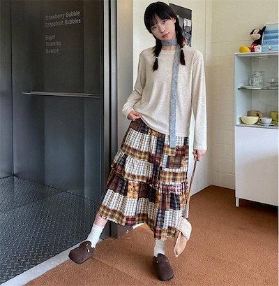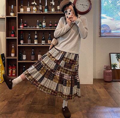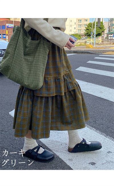 スカート レディース ウエストゴム ボトムス ロング丈 チェック柄 Aライン 切り替え ロンスカ 膝下 秋 冬 ファッション フレアスカート 可愛い 秋コーデ 冬コーデ 着痩せ オシャレ ゆったり カ