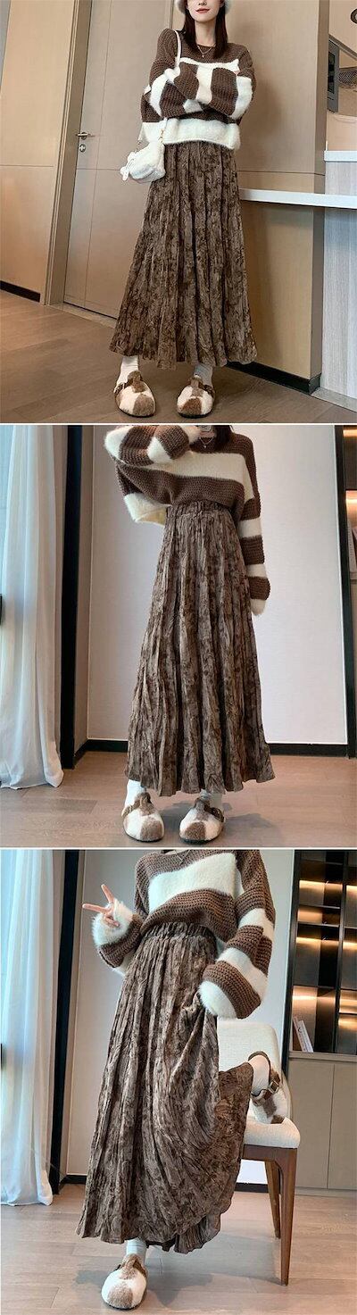 スカート レディース 新作 ギャザースカート ギャザー ベロア プリント ボトムス ロング スカート ロングスカート aライン Aライン エレガント お洒落 秋 冬 レトロ ハイウエスト クラシック