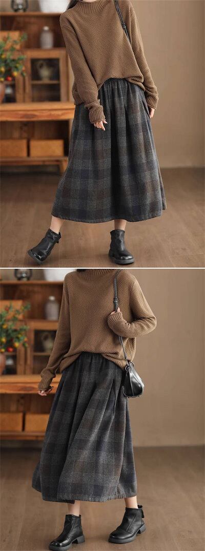スカート レディース 新作 チェック柄 フレアスカート ラシャスカート ウール 綿 コットン 厚手 秋 冬 ボトムス ロングスカート Aライン カジュアル エレガント きれいめ 着痩せ ロング レトロ