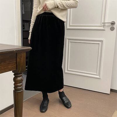スカート ロング スリット ナロースカート ナロー ロングスカート タイト レディース タイトスカート 裏起毛 ロング丈 マキシ丈 ボトムス セルフカット 秋冬 体型カバー 暖か オシャレ ブラック