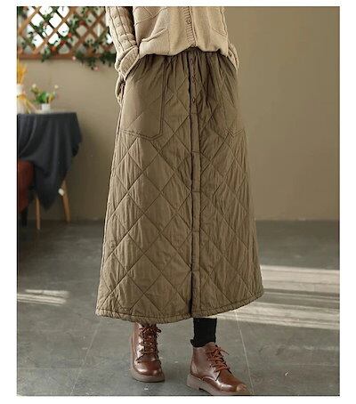 スカート ロング 中綿 レディース 秋冬 キルティング 中綿スカート 厚手 ボトムス ウエストゴム ミモレ丈 暖い 防寒 大きいサイズ 体型カバー ポケット付き あったか きれいめ カジュアル 大人可