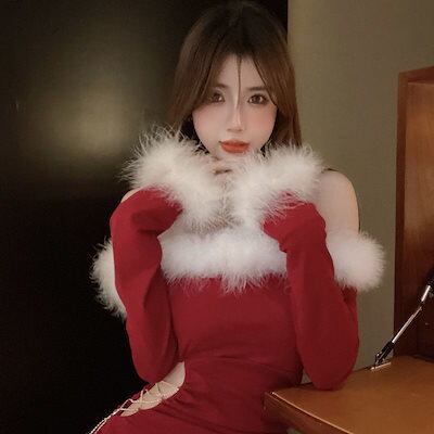 【2025人気の新作】クリスマス コスプレ メガ割 安い コスプレドレス ワンピースクリスマス気分 赤ワンショルダーワンピース秋冬クリスマスはタイトなバッグとヒップスカートを着て コスプレ ハロウィン