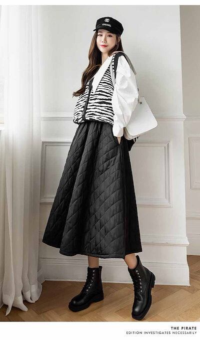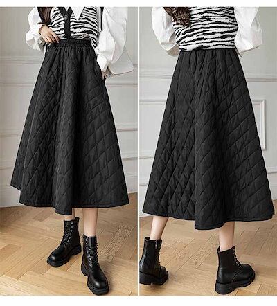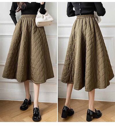 スカート ロング 秋冬 キルティングスカート フレア キルティング 大きいサイズ 大人 中綿入り ミモレ丈 Aライン フレア ゆったり 防寒 きれいめ カジュアル ロングスカート フレアスカート【