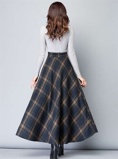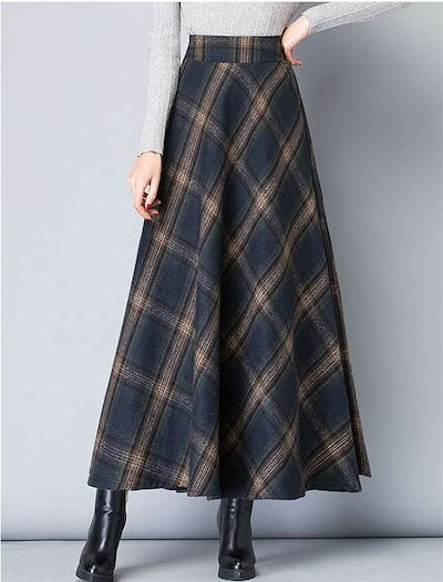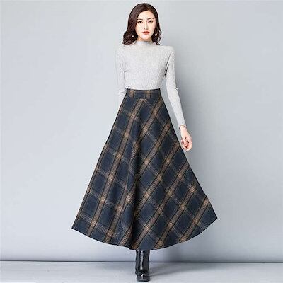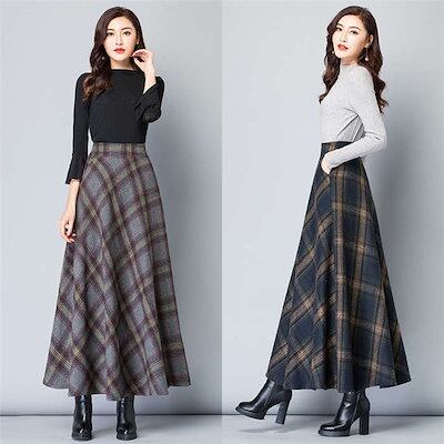 スカート レディース 秋 冬 ロングスカート ボトムス 裏起毛 チェック フレアスカート マキシスカート マキシ丈 ロング 無地 レトロ ゆったり 大きいサイズ 体型カバー 大人 着回し 着痩せ ママ